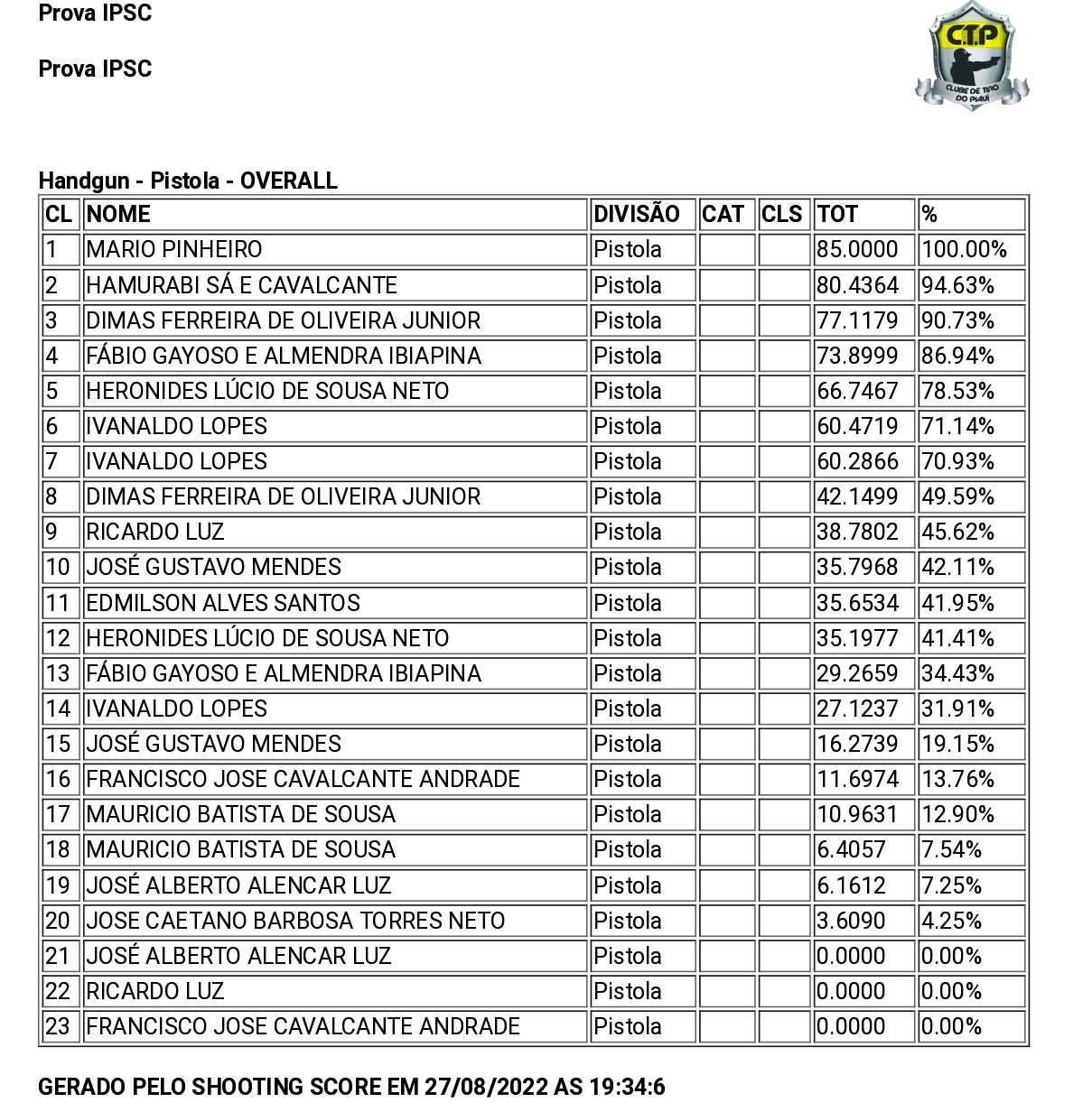 O evento contou com as modalidades Handgun (pistola e revólver ) e CCP (carabina), com a execução de uma pista com 17 disparos mínimos.