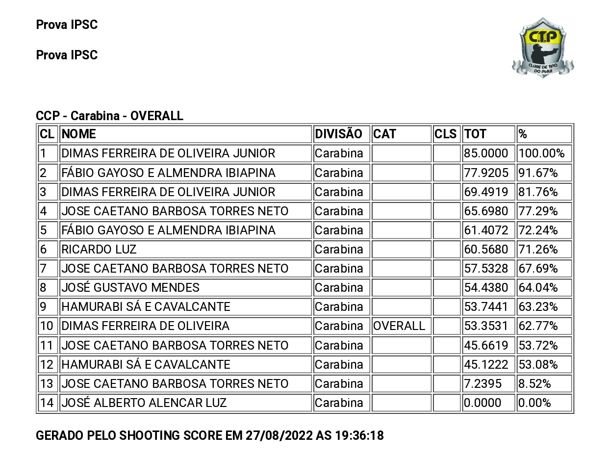 No sábado 27 de agosto, o CTP realizou uma competições de Tiro Prático com a participação dos associados e convidados.